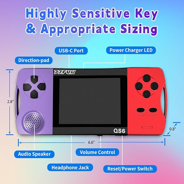 【大画面と持ち運びやすさ、充電式の利便性】3.2インチの高精細カラー画面を搭載し、鮮やかな色彩とクリアな画質でゲームの世界を生き生きと表現。子供の目を保護する設計で、長時間のプレイでも疲れにくい仕様です。コンパクトで軽量(約150g)なボディは持ち運びに最適で、バッグやポケットに簡単に収まります。内蔵の充電式リチウム電池はフル充電で4~6時間の連続プレイが可能。付属のUSBケーブルで手軽に充電でき、電池交換の手間を省きます。いつでもどこでも、子供の楽しみを途切れさせません。