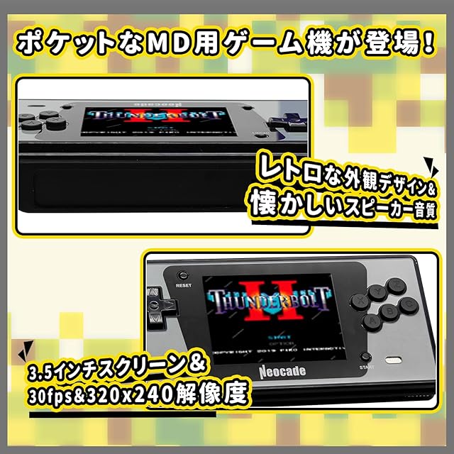 商品名:《新品未開封》NEOCADE ポケット レトロゲーム機 メガドライブ用 メガ・レトロ ポータブル SEGA MD用 可携帯 レトロ ハンドヘルド ゲーム機 18本 NES 収録 12 in 1 Mega Drive ゲームカートリッジ付き 3.5インチLCDスクリーン 30fps 解像度320x240 持ち運びに便利【英語版】