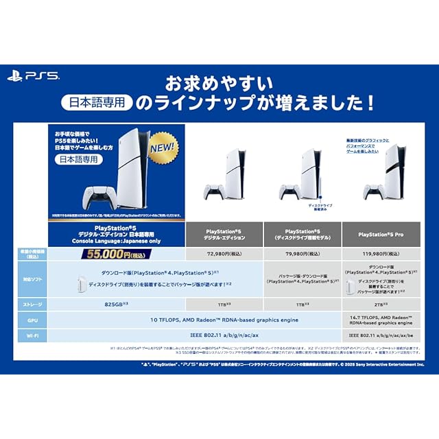 PlayStation 5のゲーム体験を実現するテクノロジーや機能はそのままに、小型化を実現した新モデルのPS5 (model group - slim)です。 Ultra HD Blu-rayディスクドライブは着脱可能となり、本体内蔵のSSDストレージは1TBになります。 ※縦置きスタンドは別売です。