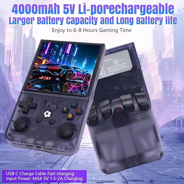バッテリーとクリアなサウンド:4000mAhのパワフルなバッテリーを搭載したこのレトロゲームコンソールは、最大6時間の連続ゲームプレイが可能で、旅行やモバイルゲームに最適です。内蔵ステレオスピーカーと3.5mmヘッドホンジャックを搭載し、一人でゲームを楽しむ時も、友達とゲームを楽しむ時も、快適なサウンドをお楽しみいただけます。