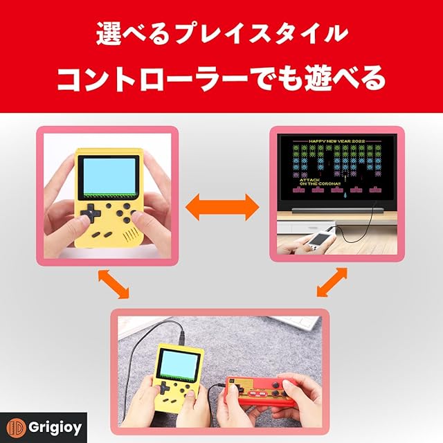 商品名:《新品未開封》Grigioy【400のゲームが遊べる】 GAMEBOY型 ゲームBOX 携帯 本体 互換機レトロゲーム 400種類内蔵 コントローラー付きモデル (ブラック)