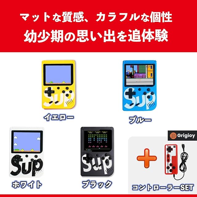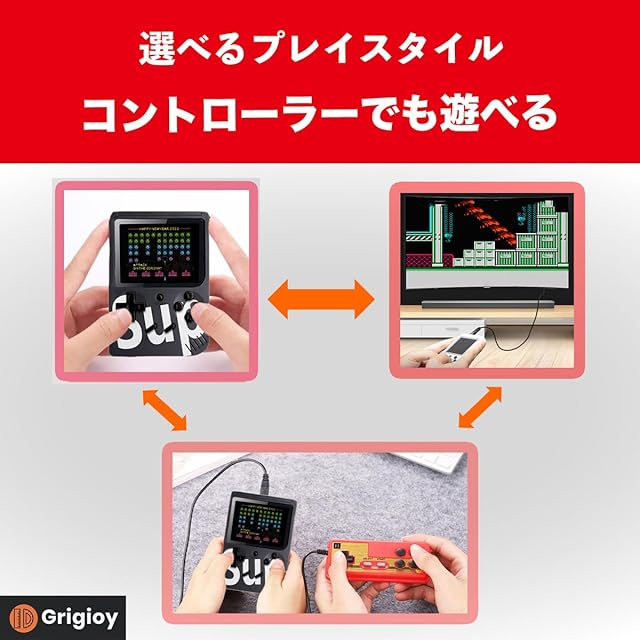 商品名:《新品未開封》Grigioy 【400のゲームが遊べる】 ゲームBOX SUP型 携帯 ゲーム機 互換機 本体 レトロゲーム 400種類内蔵 コントローラー付きモデル (ブラック.)