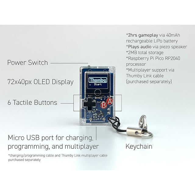 《新品未開封》TinyCircuits Thumby (クリア) 世界最小級ミニチュアゲーム機 ガジェット好きが思わず欲しくなる超小型キーチェーンガジェット 遊べる&プログラミング対応 ギフトにも最適【正規品】