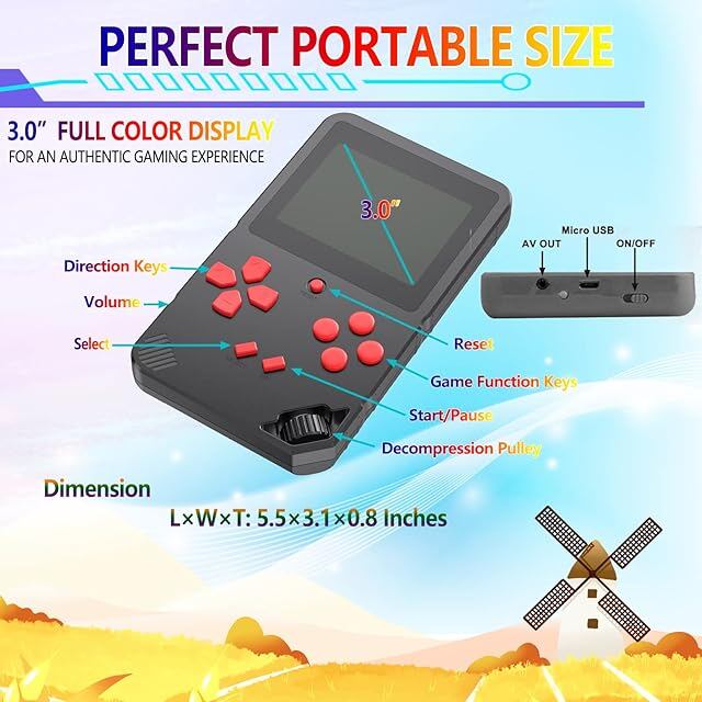 ★子供のために生まれた!このゲーム機は子供のためにデザインされています!カラー、形、重量、ボタン布局、長持ち、パッケージ、説明など、世界各地の可愛い子の最適な選択です!6歳の子供でも楽しくプレーできます。