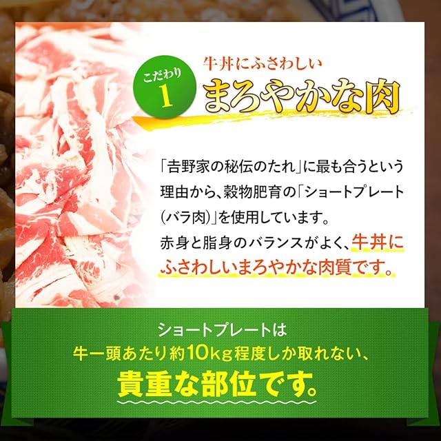 【手軽で便利】外出しなくても吉野家のおいしい牛丼が食べられます。近くに吉野家のお店がなくても吉野家の味を楽しめます。ご飯を作りたくない。そんな時にレンジや湯せんであたためれば、一人でも家族でも手軽に食べられます。厚さ約1.0cmなので冷凍庫の容量が少なくても楽に収納できます。
