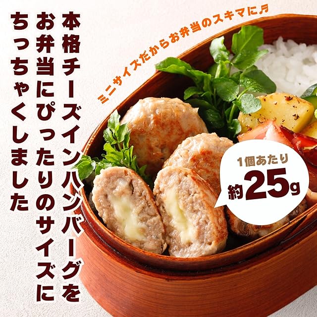 ✅1個あたり約25gのコロコロかわいいひとくちサイズ!お弁当はもちろん小腹がすいたときにおすすめ!お子様も食べやすいミニサイズのチーズインハンバーグ