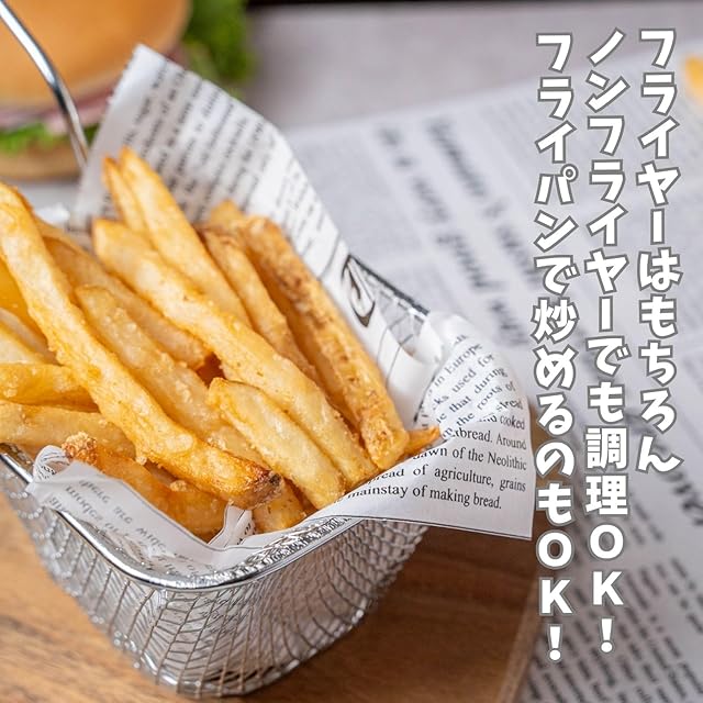 ●フレンチフライに最適な管理栽培されたジャガイモ原材料を最新の設備の工場で製造したフレンチポテト。 シューストリングはカリカリ感をお楽しみいただけるフレンチフライの代表的なカットスタイル。<br><br> ●シューストリングとは靴紐の事。シューストリングポテトとは「靴紐のようなポテト」と言う意味なんです!<br><br> ●細長い形状で、少ない油でもカリカリっと美味しく仕上がります。長い揚げ時間もいりません。<br><br> ●おいしい!お召し上がり方<br> 油を170℃~180℃に熱し、本品を凍ったまま袋から取り出し鍋に入れ、1分半~2分を目安に薄いキツネ色になりまで揚げてください。<br><br> ●調理上の注意<br> ・霜や水分が付着している場合、油がはねあがることがありますので、十分に水気をきってからご使用ください。<br> ・一度にたくさん入れたり、油の量が少ないと温度が下がり、調理不良の恐れがありますのでご注意ください。<br> ・機種や調理量により加熱時間は多少異なります。<br><br> ◆名称<br> フライドポテト(シューストリング)<br> ◆内容量<br> 1kg<br> ◆セット内容<br> 1kg×1袋<br> ◆保存方法<br> -18℃以下で保存してください<br>