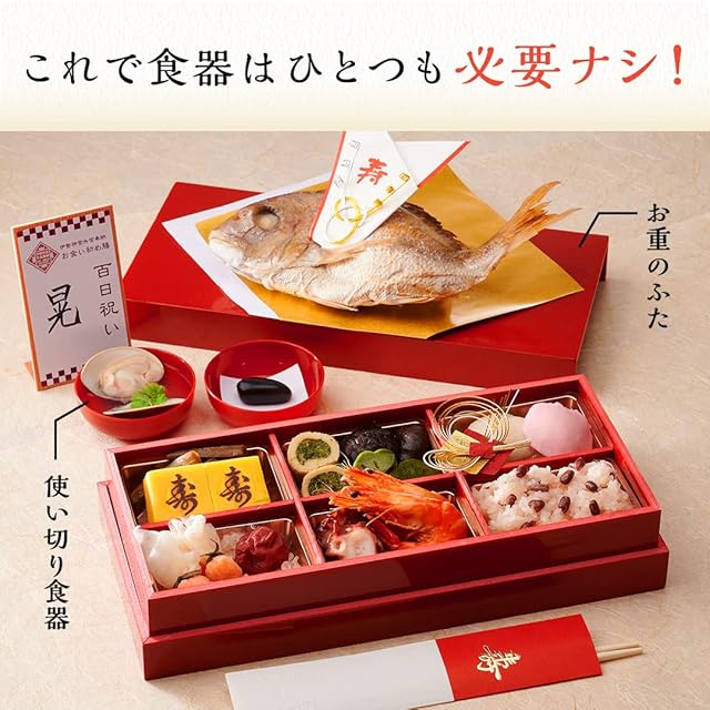 《新品未開封》お食い初め 料理セット お食い初めセット [伊勢神宮外宮奉納 お食い初め膳 爛々] 男の子 女の子 使い切り食器付 (6マス赤(男の子))