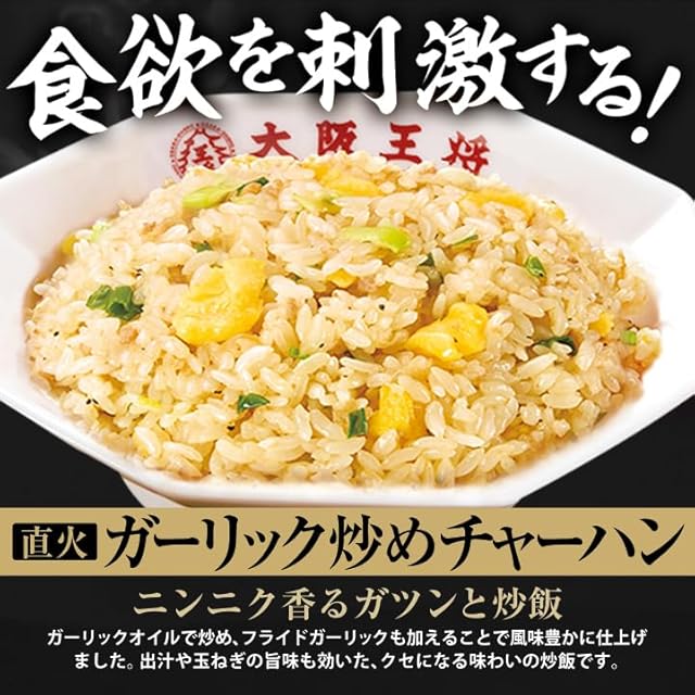 【商品内容】・肉餃子50個(850g)×1 ・餃子のタレ2袋×3 ・こだわり餃子12個×1 ・炒めチャーハン(230g)×3 ・ガーリック炒めチャーハン(210g)×2 ・カレーチャーハン(230g)×2 ・豚カルビチャーハン(230g)×2 ・エビ塩炒めチャーハン(210g)×1