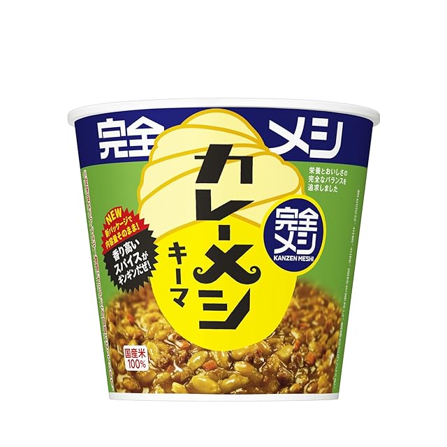 栄養とおいしさの完全なバランスを追求した「完全メシ キーマカレーメシ スパイシー」 <br><br> 「キーマカレーメシ」のおいしさはそのまま、栄養とおいしさの完全なバランスを追求! ビタミン・ミネラル・必須脂肪酸もバランスよく摂取できるのに、しっかりおいしく仕上げました。 <br><br> お湯かけ簡単調理!<br><br> オニオンなどの野菜とチキンの旨みをベースに、クミン、コリアンダー、カルダモン、クローブなどのスパイスをきかせた香り高くスパイシーなカレーです。