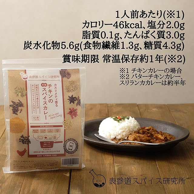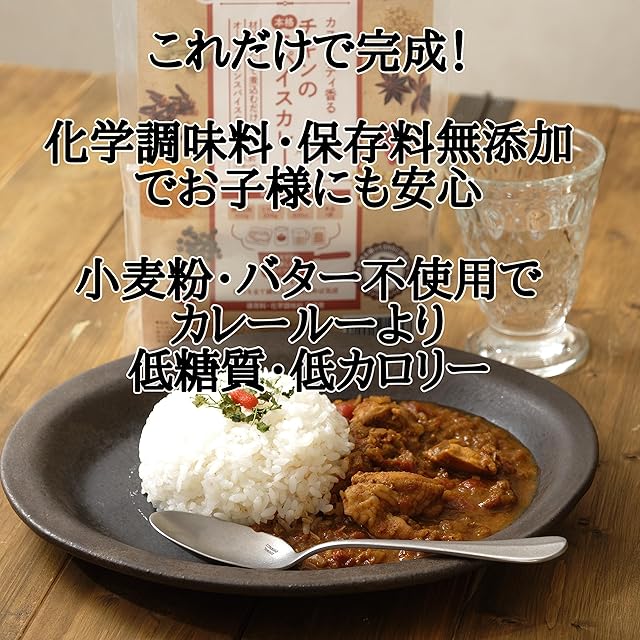 【作り方】鶏肉、豚肉など(300g)、トマト缶(200g)、水300cc、スパイスカレーの素1袋を鍋に入れて中火で5分、弱火で20分煮込むだけ。失敗なく美味しいスパイスカレーが完成。