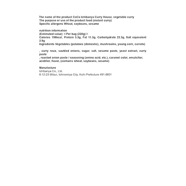 商品名:《新品未開封》CoCo壱番屋 レトルト野菜カレー(5個入) 220グラム (x 5)