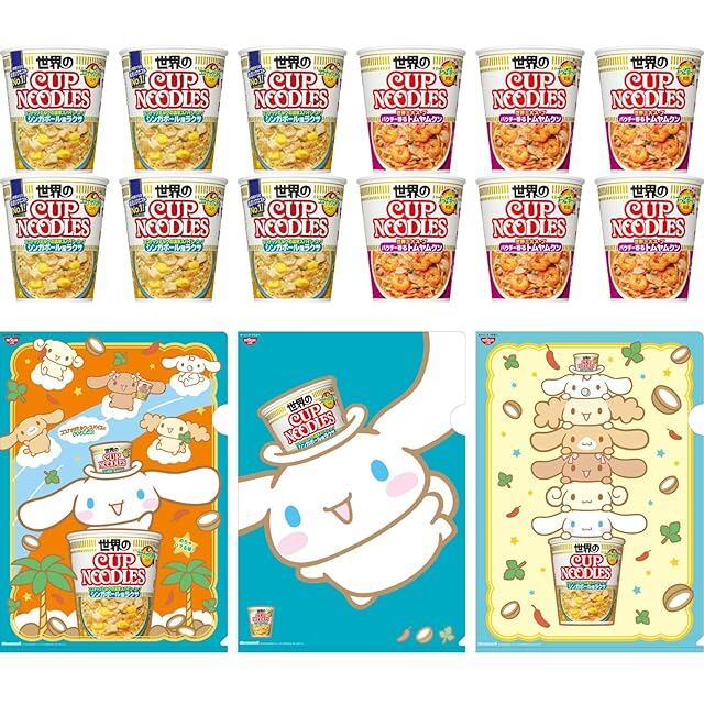 商品名:《新品未開封》カップヌードル ラクサ・トムヤムクン各6個 計12個 + シナモロール オリジナルデザインクリアファイル3種×各1枚 コンプリートセット [日清食品 サンリオ コラボ インスタント カップ麺] 【セット買い】