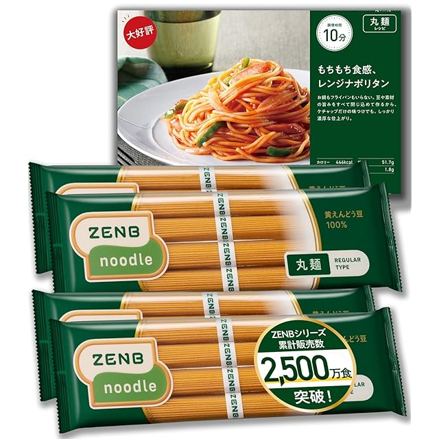 【2000万食*突破話題の豆麺】:ZENBの人気No.1商品、ヘルシーヌードル 「 ZENBヌードル ( ゼンブヌードル )」。ZENBが独自開発した製法でほのかな豆の旨味に、もちっとした食感で、都内の有名シェフも認めるおいしさ。原材料の黄えんどう豆は、古くから北欧やロシアなどで食べられ、海外では親しまれているスーパーフードであり、プロテイン の原材料にも使われる優秀素材です。* 2025年4月30日時点