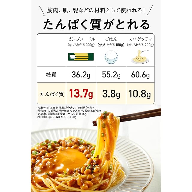 【オリジナルレシピ付き】:冷蔵庫の中の食材で、面倒な下ごしらえもいらず、10分以内においしい手作りごはんがパパっとできます。料理手順は、すべてオールカラーで見やすく、準備する食材も大事なポイントもわかりやすく記載。TVで話題の「納豆まぜ麺」や「ZENB流ラーメン」など、まずはオリジナルレシピを見ながら、「ZENBヌードル」のもちっと食感をお楽しみください。 電子レンジ調理可:お鍋で茹でるだけでなく、電子レンジも使用可能なので、忙しい日でも簡単に調理いただけます。茹で時間の目安は、鍋で7~8分、レンジで8分30秒~9分。