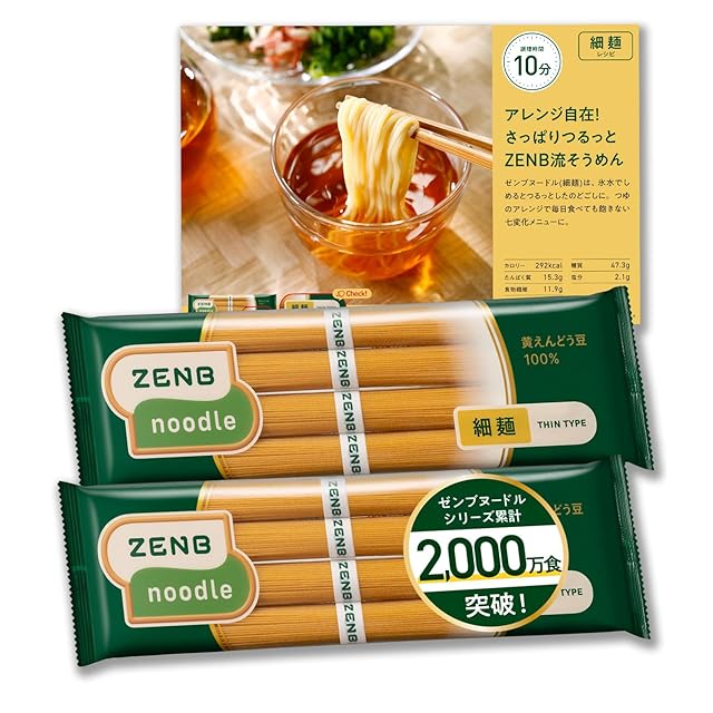 商品名:《新品未開封》【 細麺タイプの豆100%麺 】ZENB ゼンブ ヌードル 細麺 8食 (2袋) 早ゆで3分 そうめん [ 糖質オフ グルテンフリー 糖質制限 腸活 時の 食物繊維 補給に ダイエット 時の栄養補給に 置き換え たんぱく質 鉄分 レンジ 調理可 ]