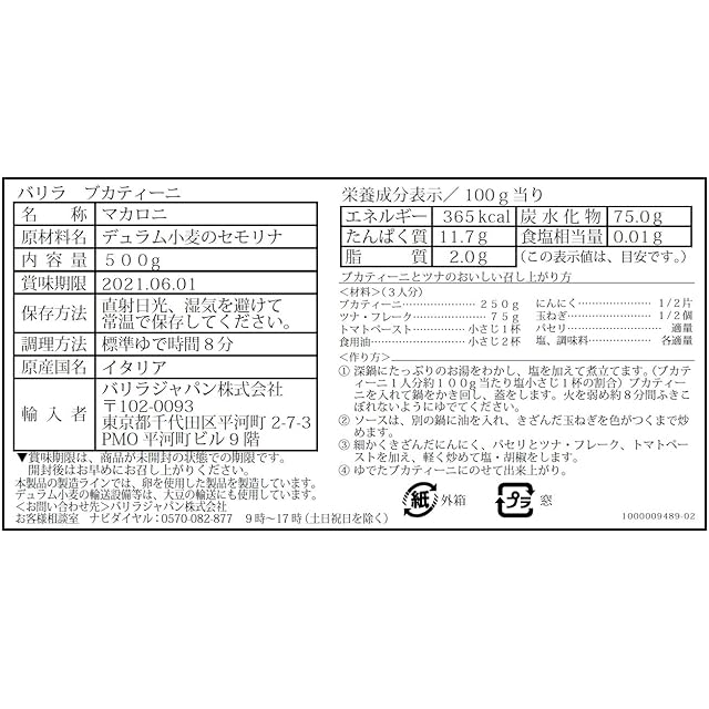 おいしいゆで方のコツ:(1人前の目安=100g)<br>1Lの沸騰したお湯に小さじ1杯の塩を加え、バリラブカティーニを広げて入れ、8分間ゆでます。すばやくざるでお湯をきりお好みのソースを絡めてお召し上がりください。