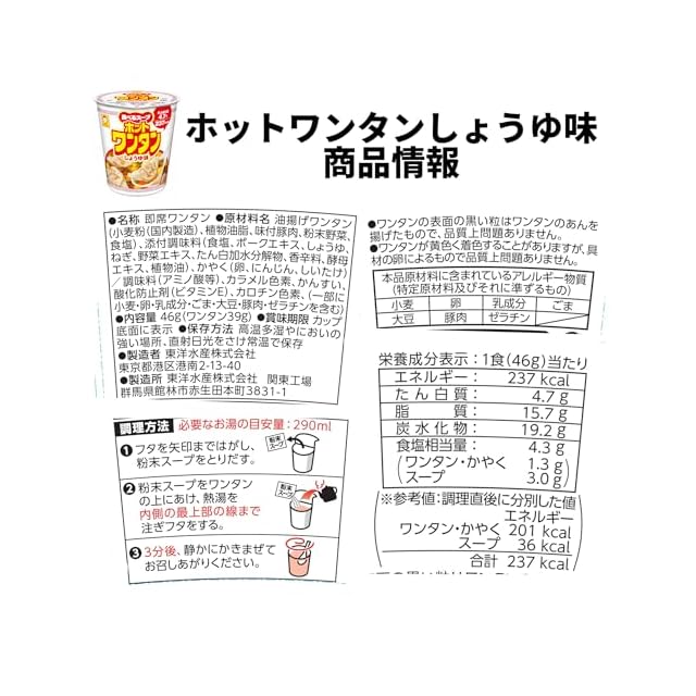 商品名:《新品未開封》ホットワンタン しょうゆ味 46g×12個