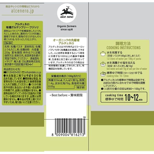 商品名:《新品未開封》ALCE NERO(アルチェネロ) 有機グルテンフリー・フジッリ 250g (オーガニック イタリア産 小麦不使用)(ゆで時間10分~12分)
