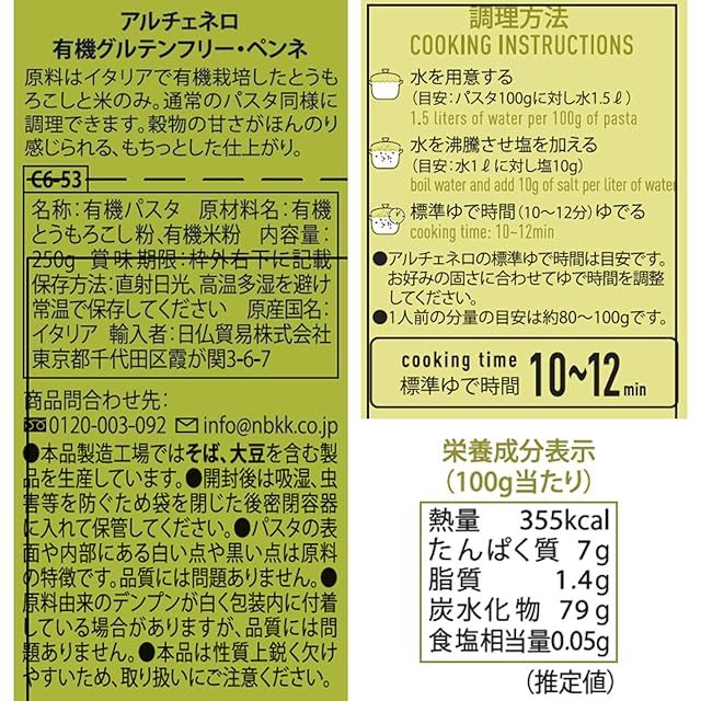 【原材料】有機とうもろこし粉、有機米粉【内容量】250g 【原産国】イタリア 【ゆで時間】8~10分