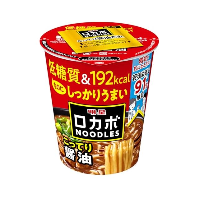 商品名:《新品未開封》明星 ロカボNOODLES こってり醤油[192kcal、糖質30%オフ、低糖質なのにしっかりうまい、たっぷり食物繊維、カップ麺、12個入]
