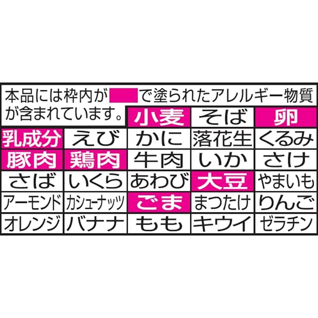 原材料: めん(小麦粉(国内製造)、食塩、植物油脂、チキン調味料)、スープ(しょうゆ、ポークエキス、豚脂、糖類、たん白加水分解物、香辛料(にんにく)、食塩、香味油、ポーク調味油)/加工でん粉、調味料(アミノ酸等)、かんすい、リン酸Ca、カラメル色素、香料、カロチノイド色素、増粘剤(キサンタンガム)、酸味料、酸化防止剤(ビタミンE)、ビタミンB2、ビタミンB1、(一部に小麦・卵・乳成分・ごま・大豆・鶏肉・豚肉を含む)
