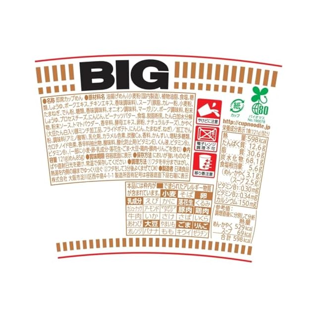 商品名:《新品未開封》カップヌードル カレー ビッグ 121g×12個 [日清食品 カップ麺 カップラーメン インスタント 大盛り BIG]