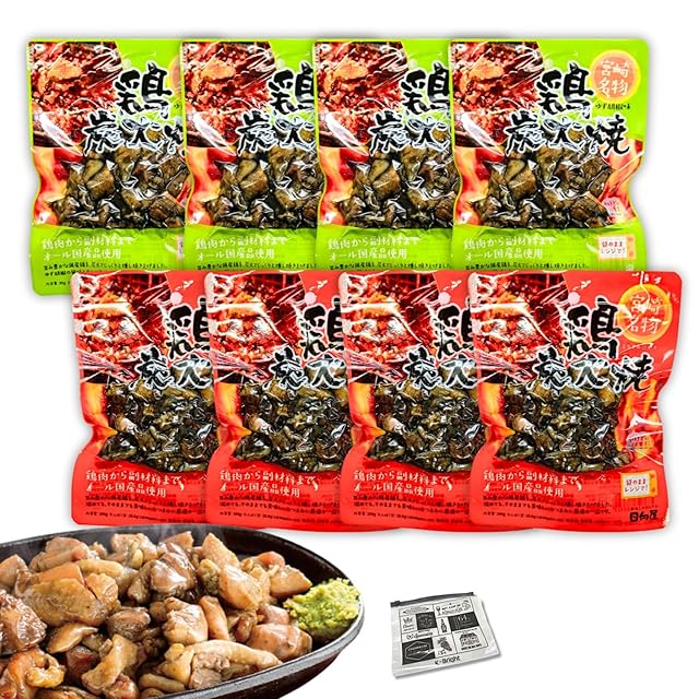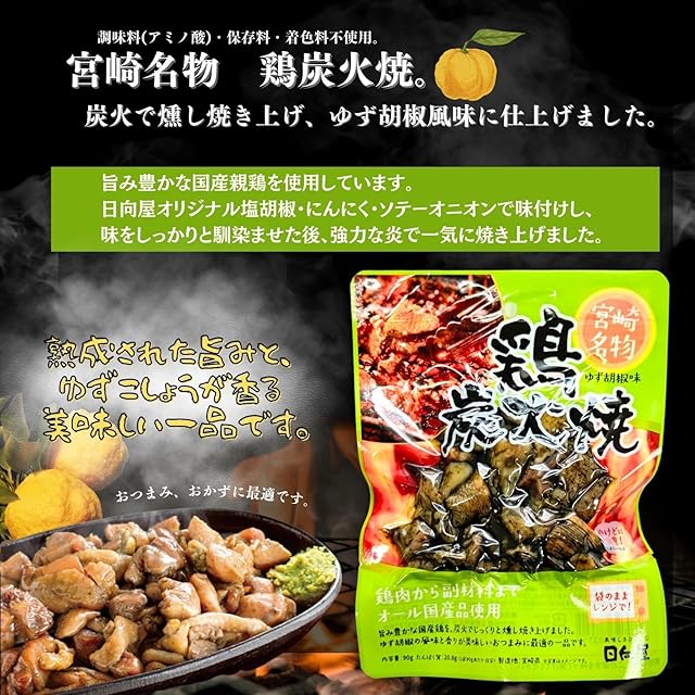 《新品未開封》K-Bright 日向屋 宮崎名物 本格炭火焼 セット 晩酌のお供にぴったり 国産鶏 (プレーン/柚子胡椒) 各4個セット 計8個 [オリジナル保存袋]