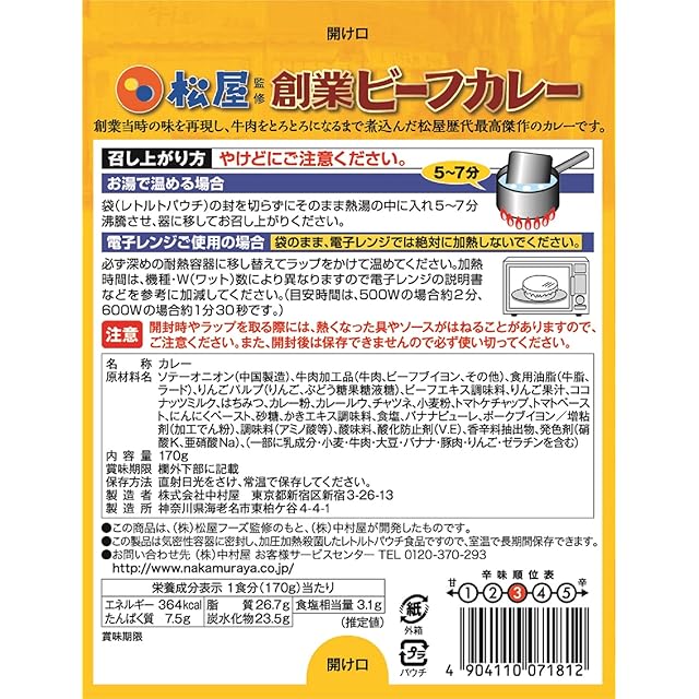 商品名:《新品未開封》新宿中村屋 中村屋 松屋監修創業ビーフカレー 170g×5個