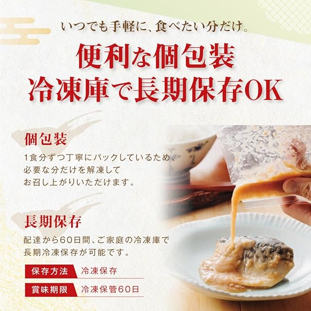 内容量:・かれいの醤油煮-淡口-〈1パック 50g×2パック〉・さばの豆乳味噌煮〈1パック 50g×2パック〉・しっとり旨塩さば-ふわり-〈1枚 約85〜90g×2枚〉・銀鮭の塩焼き 〈1切 約70g〜75g×2切〉・赤魚のまろやか黒酢あんかけ〈1パック 110g×2パック〉