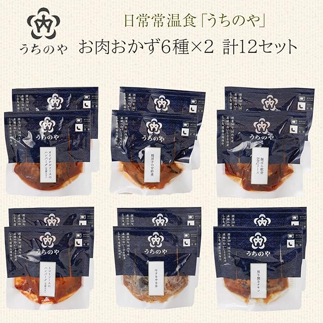 商品名:《新品未開封》【お肉のおかず 12食 大容量】uchipac メインディッシュ 6種 無添加 長期保存 惣菜セット 詰め合わせ ストック [常温備食生活 うちのや]