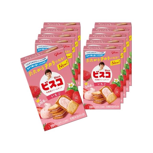 商品名:《新品未開封》ビスコ いちご bisco glico 乳酸菌クリームサンド ビスケット 15枚×10個 江崎グリコ