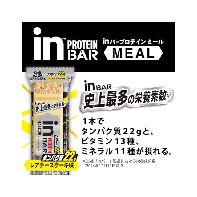 《新品未開封》inバープロテインミール <レアチーズケーキ>18本 プロテインバー inバー チョコバー タンパク質22g ビタミン13種 ミネラル11種 Eルチン 森永製菓【 限定】