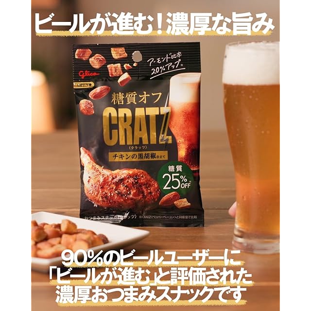 商品名:《新品未開封》糖質オフクラッツ チキンの黒胡椒仕立て 42g×12袋 江崎グリコ おつまみスナック 適正糖質 ロカボ お酒に合う ビール ハイボール glico cratz
