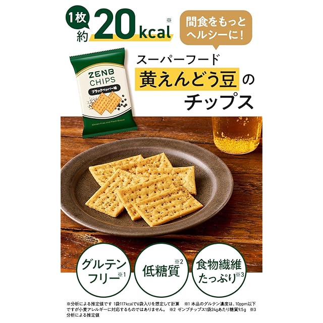 商品名:《新品未開封》【 ヘルシー 間食 】 ZENB ゼンブ チップス ブラックペッパー 6袋(標準36枚) クラッカー 豆チップス 胡椒 [ 低糖質 食物繊維 グルテンフリー 糖質オフ 糖質制限 糖質コントロール 腸活 時の 食物繊維 補給に ダイエット 時の栄養補給に 置き換え 鉄分 間食 小腹満たし 小腹がすいた時に食べる おやつ お菓子 砂糖不使用 ]