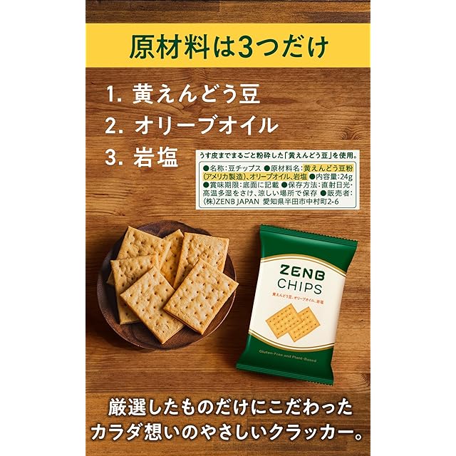 商品名:《新品未開封》【 ヘルシー 間食 】 ZENB ゼンブ チップス 40袋(標準240枚) クラッカー 豆チップス [ 低糖質 食物繊維 グルテンフリー 糖質オフ 糖質制限 糖質コントロール 腸活 時の 食物繊維 補給に ダイエット 時の栄養補給に 置き換え 鉄分 間食 小腹満たし 小腹がすいた時に食べる おやつ お菓子 砂糖不使用 ]