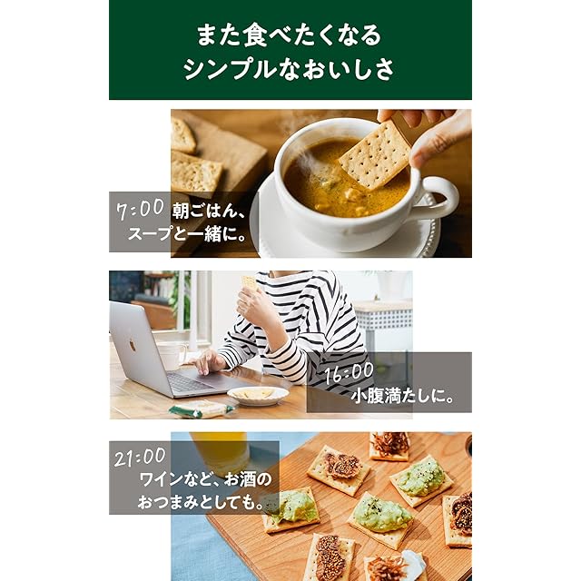 ☕低糖質、食物繊維たっぷり※2 :いつものクラッカーより食物繊維5.9倍、糖質30%オフ、塩分50%オフ、鉄分5.2倍(※2)。※2:分析による推定値。日本食品標準成分表2020年版オイルスプレークラッカーとソーダクラッカーの平均(100g当たり比較)。チップス1袋24g当たり糖質10.0g。チップス100gあたり食物繊維12.5g、糖質41.8g、食塩相当量0.8g、鉄分3.9mg