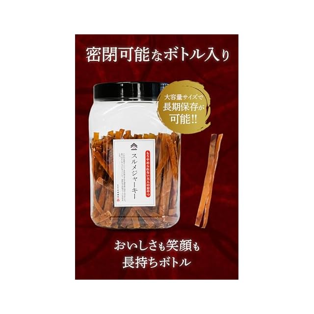 ✅【業務用でもっとお得に!】するめジャーキーがたっぷり大満足量入った、業務用でとってもお得にお届け!大容量でもポット容器に入っていますので、保管もしやすく食べやすいするめジャーキーとなっています。お酒のおつまみはもちろん、お子様のおやつとしても、ご家族皆さまで毎日気軽にお楽しみいただけます。