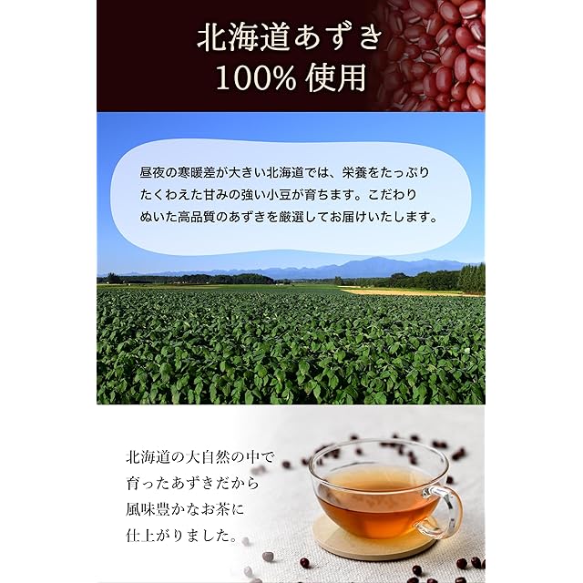 北海道産100%のあずきを使用した、無添加・ノンカフェインの「あずき茶」。42包×4g入りで、日常的にたっぷり楽しめます。