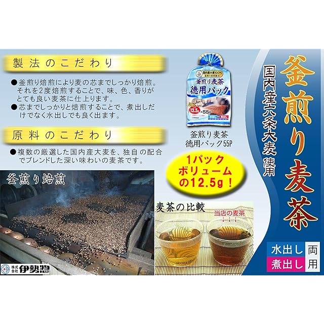 商品名:《新品未開封》伊勢惣 釜煎り麦茶徳用パック55P 12.5g×55P