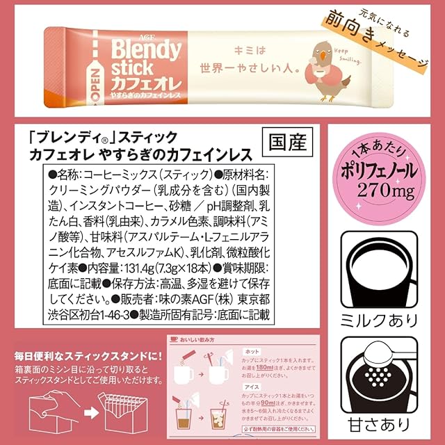 商品名:《新品未開封》AGF ブレンディ スティック カフェオレ やすらぎのカフェインレス 18本 【 カフェインレスコーヒー 】【 スティックコーヒー 】