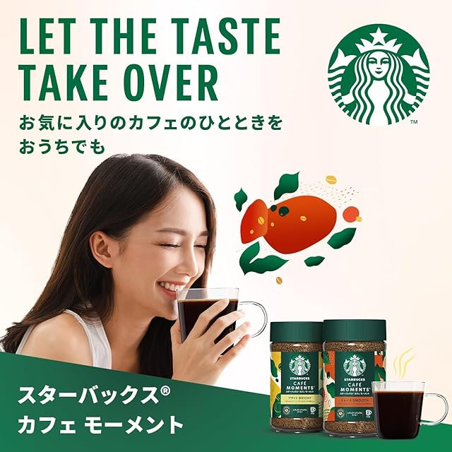 お湯を注ぐだけで、手軽にスターバックスの味わいを楽しめる、レギュラーソリュブルコーヒー