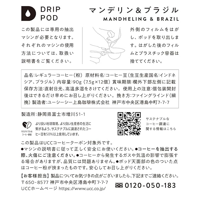 《新品未開封》UCC ドリップポッド 専用カプセル マンデリン&ブラジル 12杯分 ×6箱 ポッド・カプセル