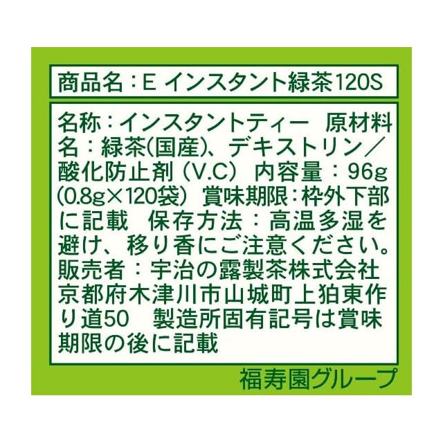 原材料:緑茶、デキストリン、酸化防止剤(V.C)