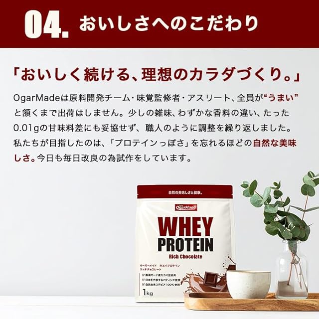 《新品未開封》OgarMade ホエイプロテイン WPC 人工甘味料不使用 国内製造 (リッチチョコレート, 1kg)