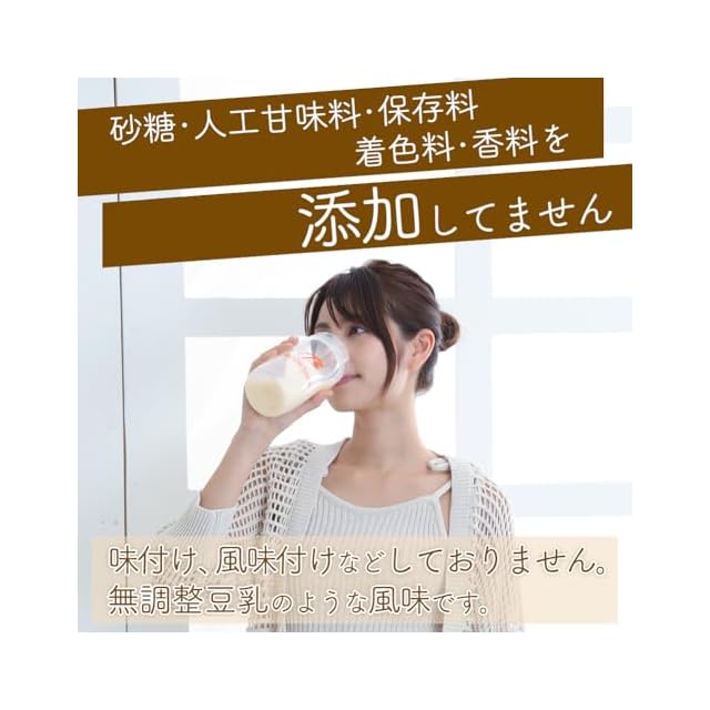 大豆臭を抑え、溶けやすくしました。糖類を添加していないため低カロリーですので、カロリー管理されている方におすすめ。また、人工甘味料を気にされる方にもおすすめです。