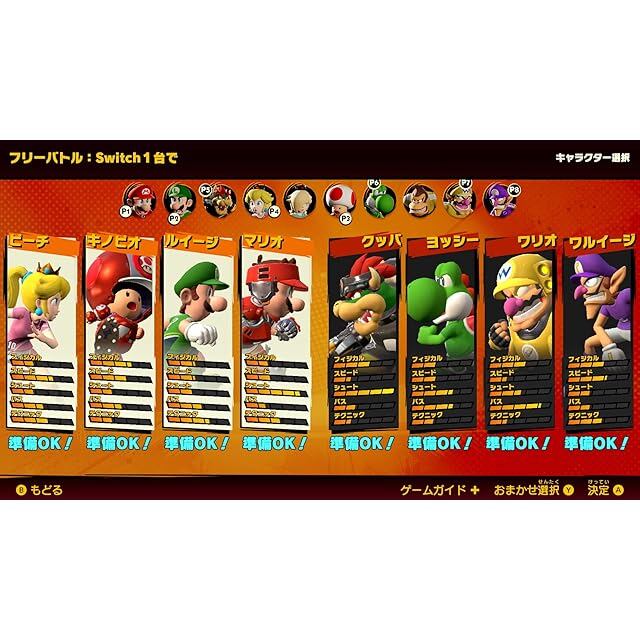 ラフプレー、アイテム攻撃、必殺シュート、なんでもアリ! 5対5で戦う新スポーツ「ストライク」でマリオたちが激突! シュート力やパス精度など、選手たちの能力や見た目を「ギア」でカスタマイズしてチームを編成。おすそわけプレイにも対応し、Nintendo Switch1台で最大8名まで遊ぶことができます。