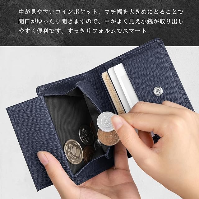 《新品未開封》[Vulmoon] 小さい 財布 メンズ コンパクト 薄い 財布 2つ折り 本革 レザー ボックス型 小銭入れ RFID スキミング防止 牛革 二つ折り ギフトBOX入り(ネイビー)
