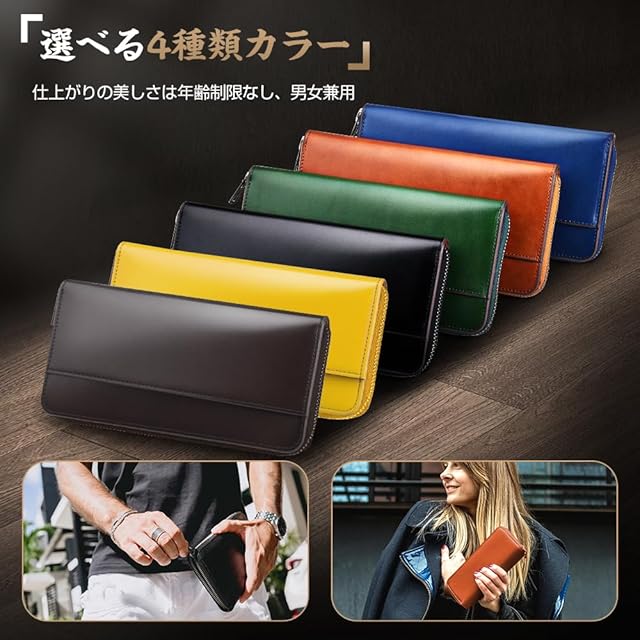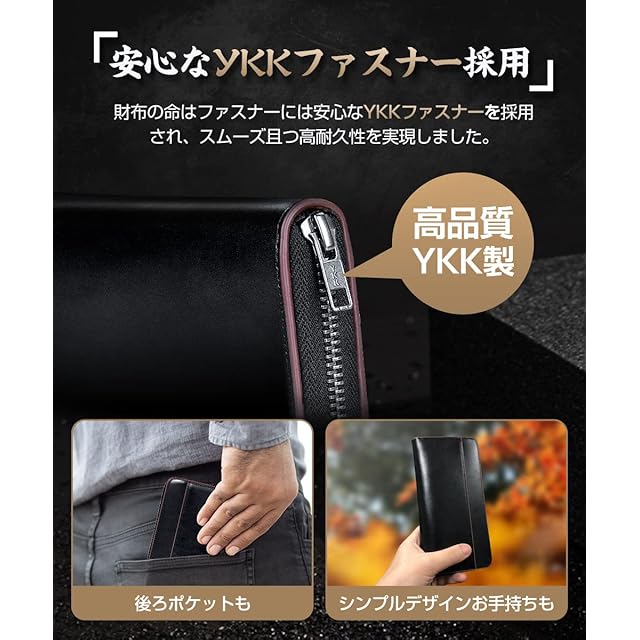 【大容量&YKKファスナー付き】 男女に問わず、大人が選ぶ栃木レザー財布です。財布は表地と内地は牛革を採用して、裏地にはナイロン素材となります。YKKファフナーとこだわりの縫製も欠かせないです。時間に経つと、表面に光沢感が溢れていきます。また、大容量の財布で、小銭入れやカードいれのスペースもたくさんつきます。