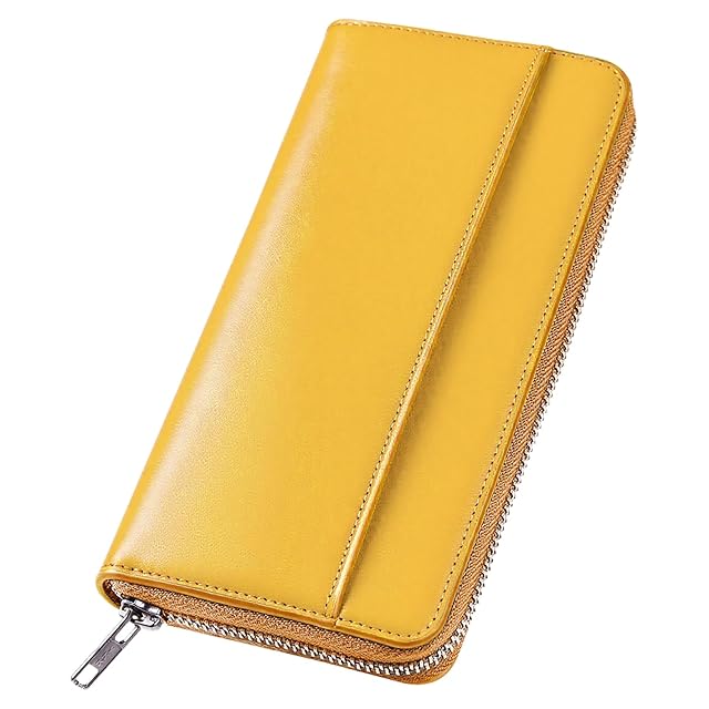 《新品未開封》財布 メンズ 栃木レザー 長財布 本革 大容量 YKKファスナー 一流の財布職人が作る レディース財布 ウォレット 牛革 小銭入れ サイフ コンパクト シンプル 無地 男性 紳士用 おしゃれ 男女兼用 父の日 母の日 人気ブランド プレゼント (イエロー)